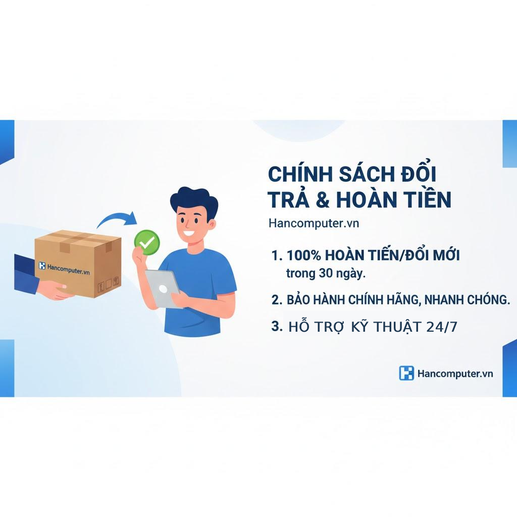 HAN COMPUTER cam kết mang đến trải nghiệm mua sắm tốt nhất cho khách hàng. Để đảm bảo quyền lợi của bạn, chúng tôi xây dựng chính sách đổi trả hàng hóa rõ ràng, minh bạch và nhanh chóng. Chính sách này áp dụng cho các sản phẩm bị lỗi do nhà sản xuất và đáp ứng các điều kiện quy định.