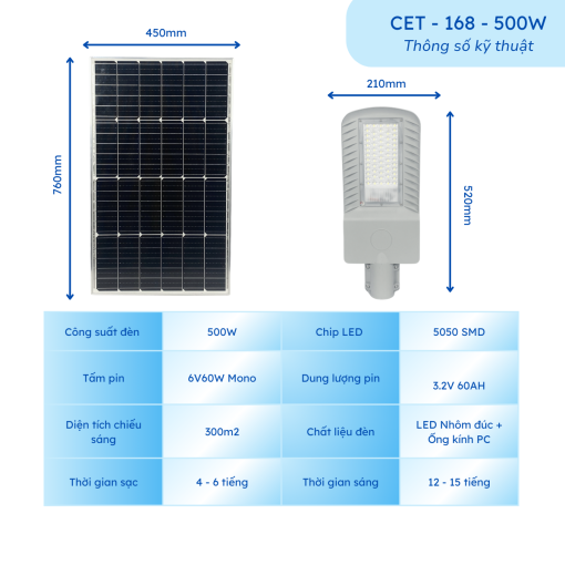 Trong những năm gần đây, các thiết bị chiếu sáng sử dụng năng lượng tái tạo ngày càng được ưa chuộng tại Việt Nam. Trong số đó, đèn đường năng lượng mặt trời 500W GY-168 nổi bật nhờ khả năng chiếu sáng mạnh, độ bền cao và khả năng tiết kiệm điện tối đa. Sản phẩm phù hợp lắp đặt cho nhiều không gian như đường phố, sân vườn, khu dân cư, nhà xưởng, trang trại hay bãi đỗ xe, giúp giảm đáng kể chi phí điện năng trong quá trình sử dụng.