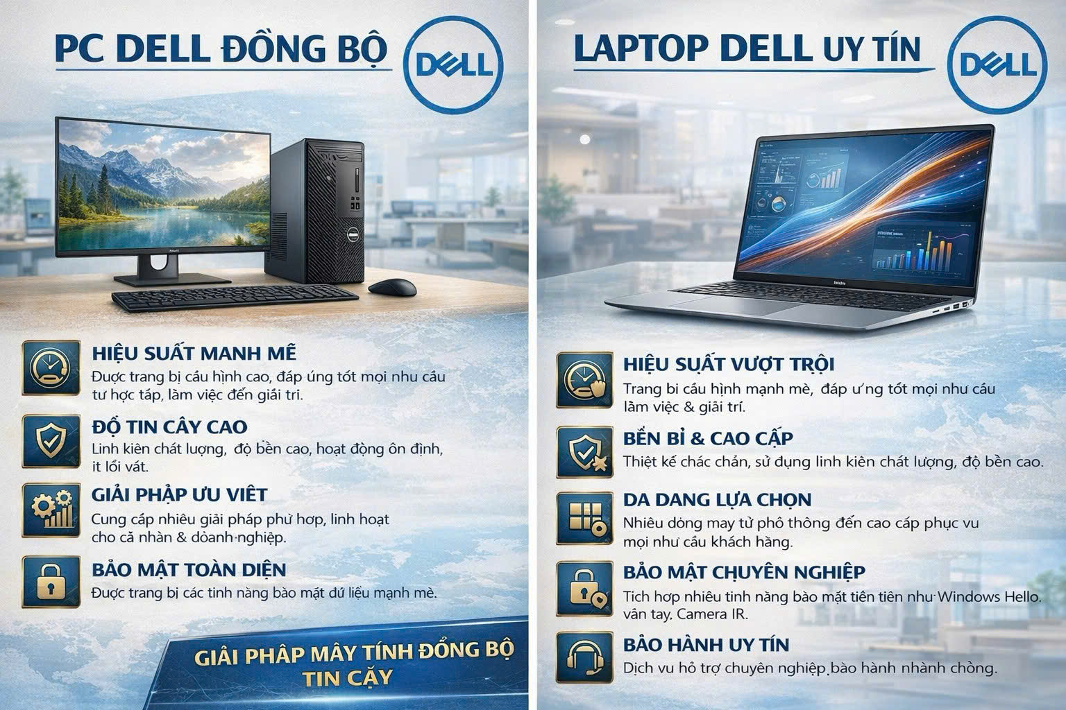 Trong ngành công nghệ thông tin, Dell là một trong những thương hiệu máy tính, laptop và giải pháp công nghệ uy tín hàng đầu thế giới. Với hơn 40 năm hình thành và phát triển, Dell đã khẳng định vị thế của mình bằng chất lượng sản phẩm bền bỉ, hiệu năng mạnh mẽ và dịch vụ hậu mãi chuyên nghiệp.