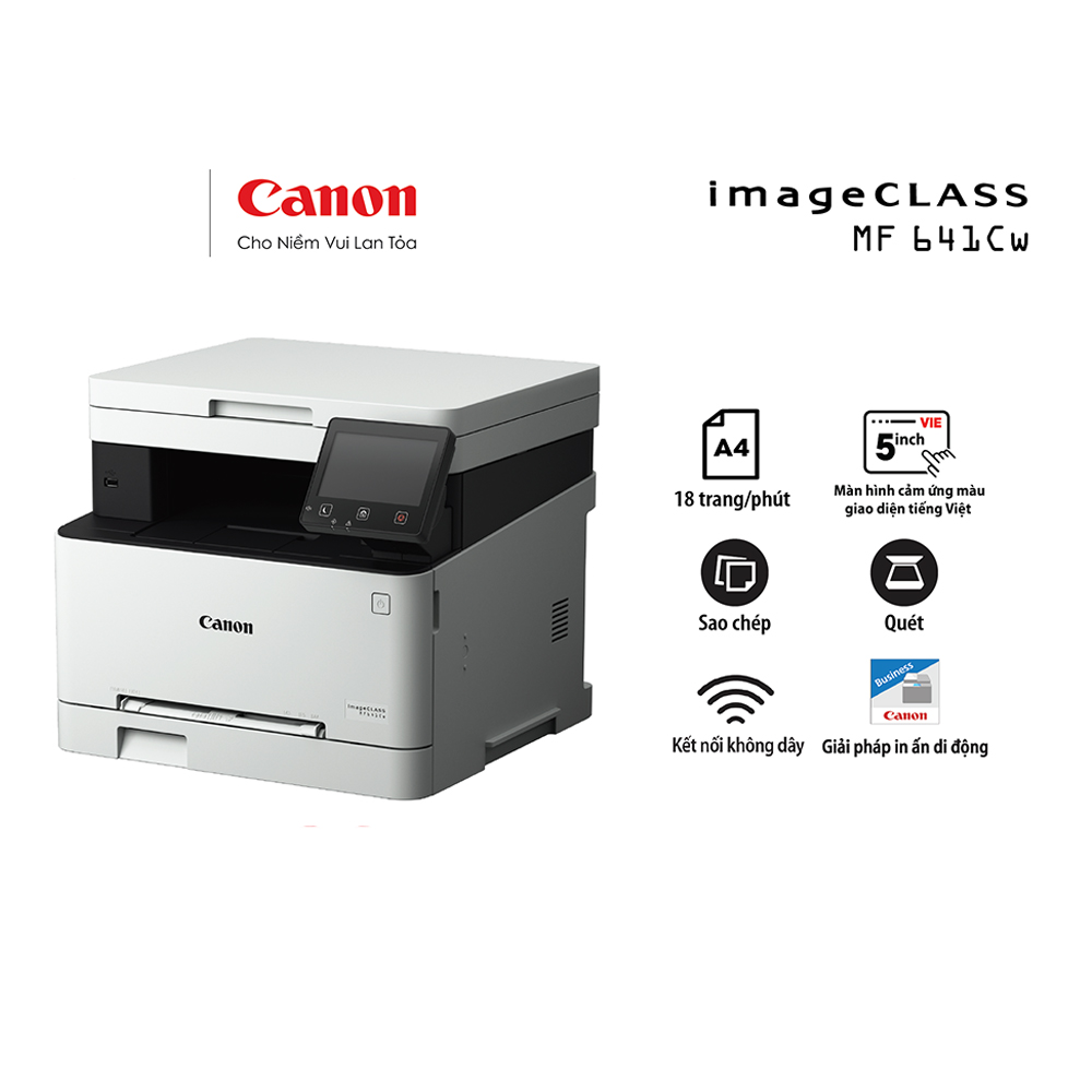 Với hiệu suất mạnh mẽ, chất lượng bản in sắc nét, khả năng kết nối linh hoạt (WiFi – LAN – USB), Canon MF641Cw chính là giải pháp in ấn toàn diện cho văn phòng hiện đại.