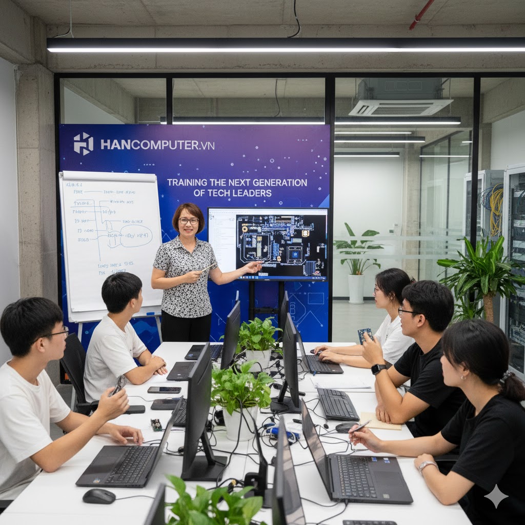 👉 Han Computer – đơn vị trực thuộc Công ty Cổ phần CNC-AI Việt Nam, chuyên kinh doanh và sửa chữa máy tính, laptop, máy in, linh kiện và thiết bị văn phòng – hiện đang tuyển thực tập sinh IT với mong muốn đào tạo và phát triển thế hệ kỹ thuật viên trẻ đầy tiềm năng.
